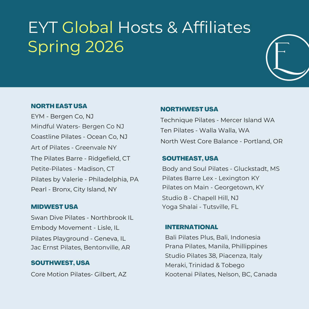 Originally developed in 2009 by Studio Owner & Classical Teacher, Jessica Spillane, to serve as a pipeline of teachers to meet the demand of her bustling studio; EYT has since evolved to serve that exact purpose for other studios around the world.